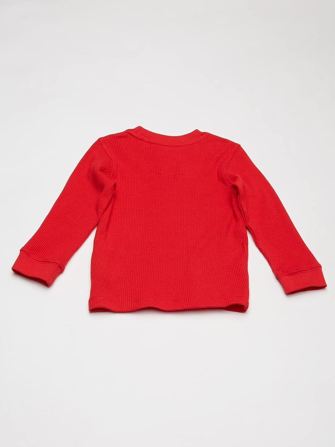 French Toast Boys Long Sleeve Thermal Waffle Tee T-Shirt White(Red Red)