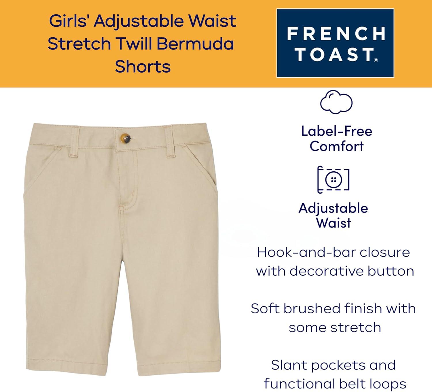 French Toast Women’s Teen and Juniors’ Stretch Twill Bermuda Shorts(Khaki Beige)