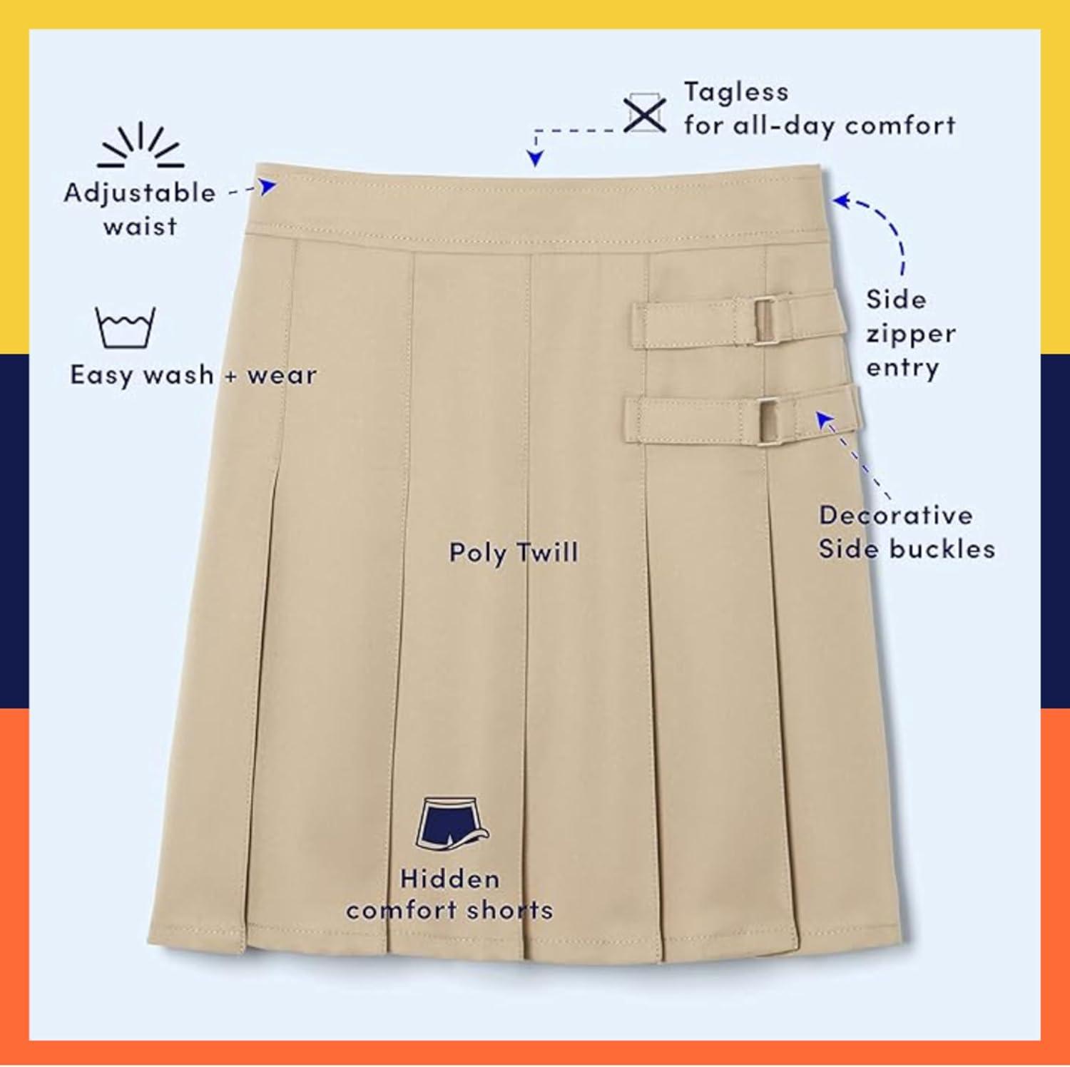 French Toast Girls’ Adjustable Waist Pleated-Front Two-Tab Scooter(Khaki)