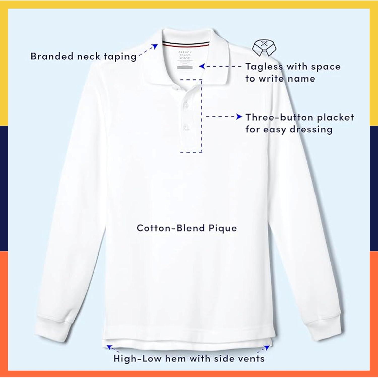 French Toast Boys Pique Polo School Uniform Shirt with Long Sleeves for Boys and Girls(Black)