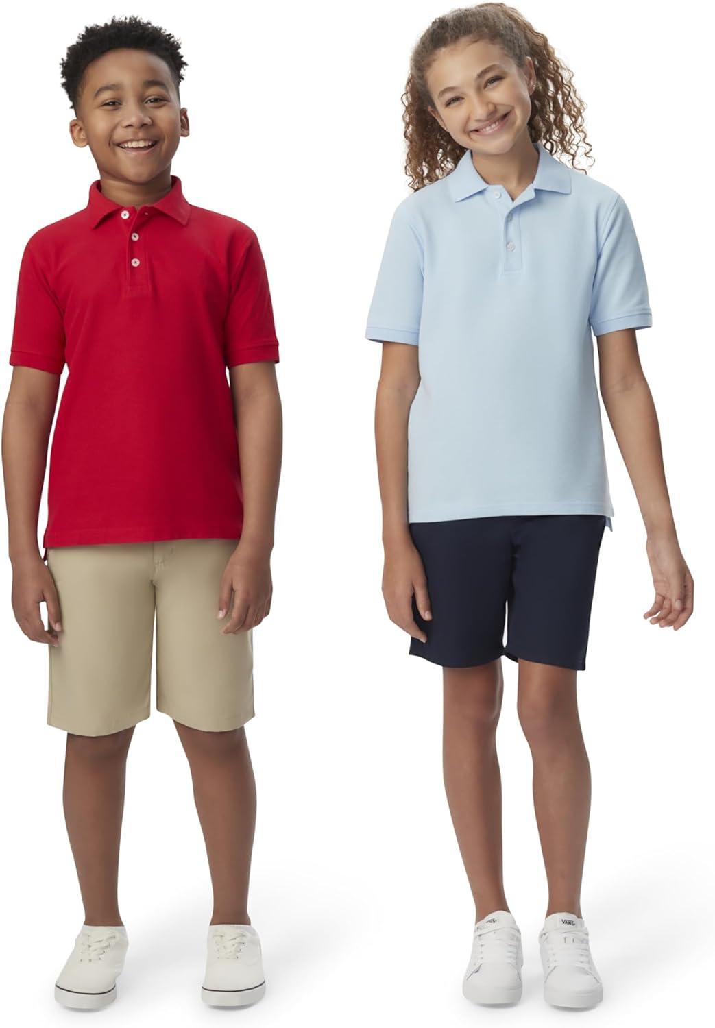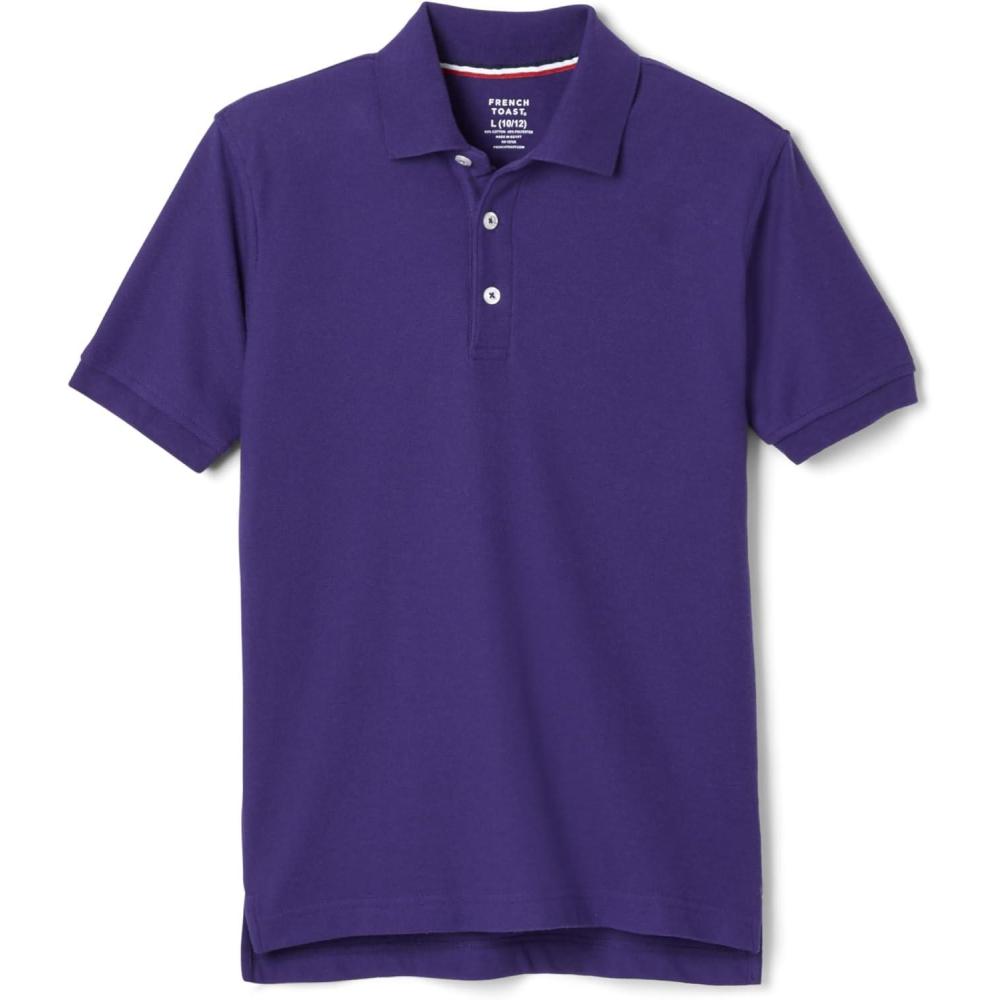 French Toast Boys Short Sleeve Pique Polo Shirt (Standard & Husky), Black, 10(Purple)