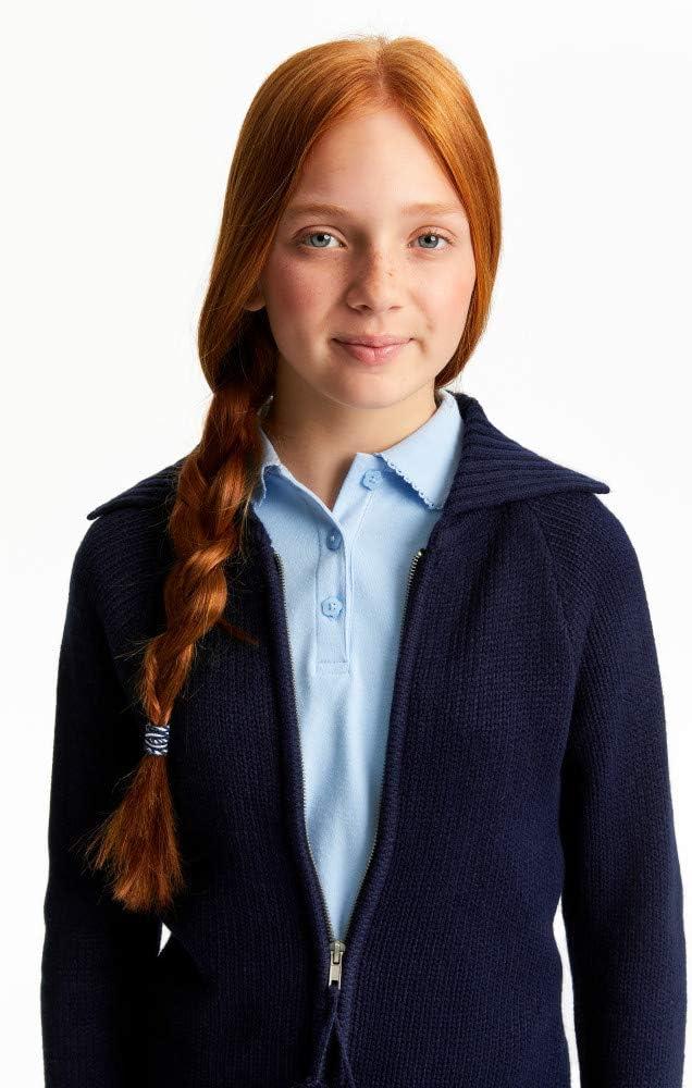 French Toast Girls’ Short Sleeve Picot Collar Polo School Uniform Shirt (Standard and Plus)(Light Blue)
