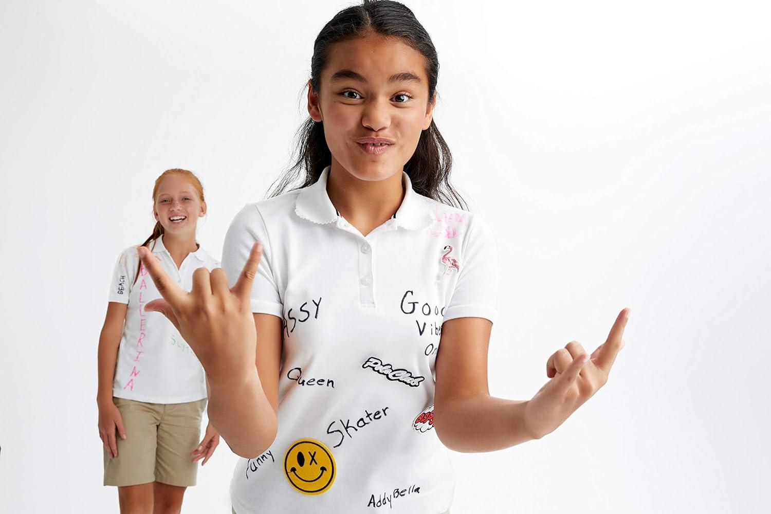 French Toast Girls’ Short Sleeve Polo Shirt with Picot Collar (Standard & Plus Sizes), White, 10-12