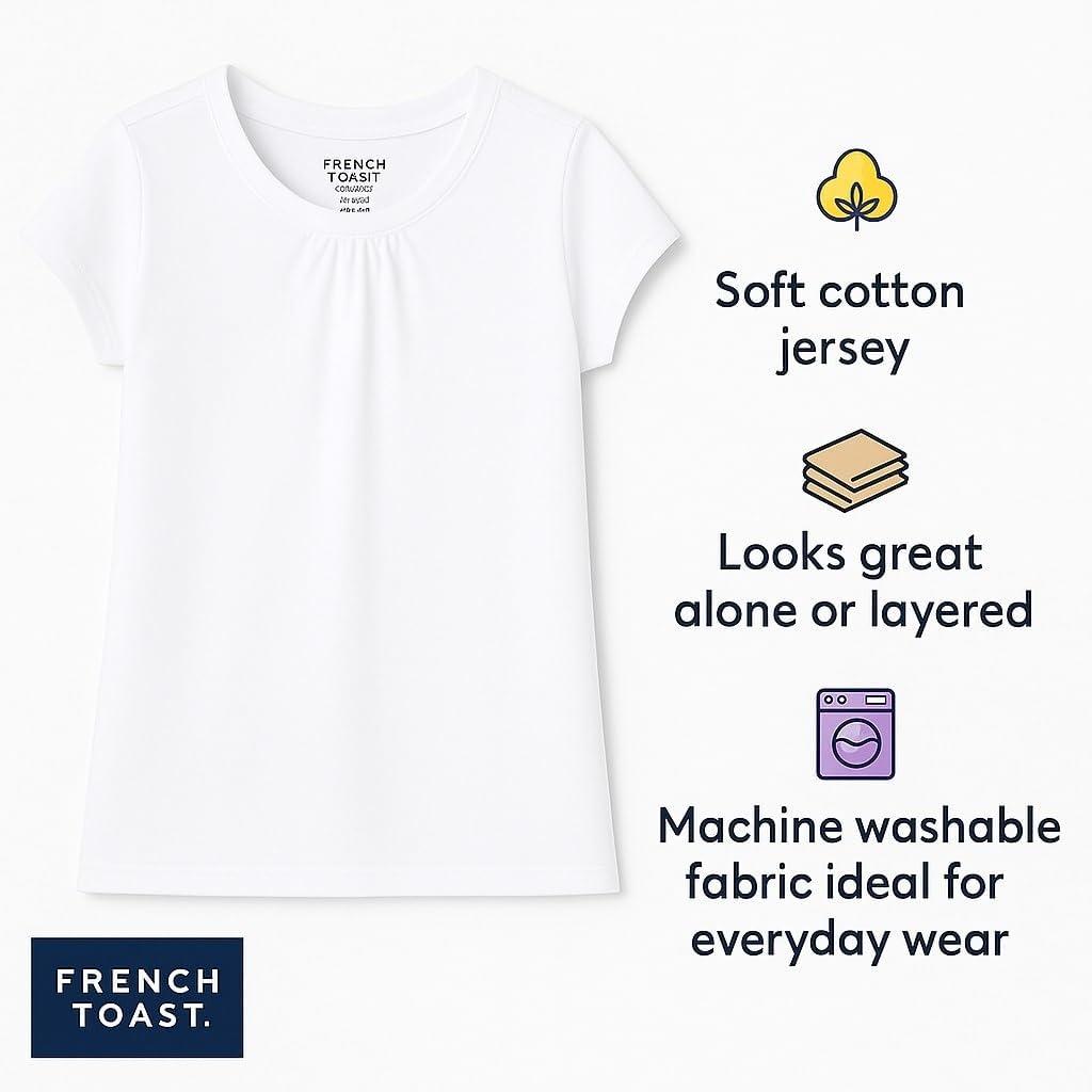 French Toast Girls’ Toddler Short Sleeve Crewneck Tee T-Shirt(White)